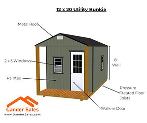 This delightful Utility Bunkie Shed is perfect for addition to your property and can be used as a Bunnkie, Creative studio, She-shed, and so much more ✅ Traditional peaked roof design and painted wood siding and trim bring a welcoming ambiance to any property ✅ Metal roof is easy to maintain, resistant to rain and moisture, and can last longer than 40-70 years. ✅ Walk-in door with window, and 3- Single-pane windows let in a ton of natural light. This 10’ x 20’ Utility Bunkie Shed size is big enough to give you the extra space you’ve been looking for! Enjoy a hassle-free experience with our fully assembled Utility Bunkie Shed that comes with Delivery and setup, Plus if you're within 50 km of select locations, delivery is included in the price. Book an Appointment NOW to talk to a Sales Agent