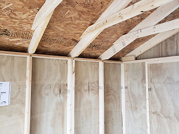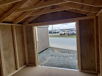 Utility shed with double doors. 7' wall, Treated siding dark stain and sheet metal roof. This shed is read to go